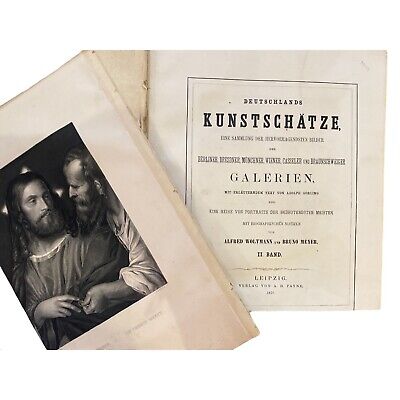 Eine Sammlung der hervorragendsten Bilder der Berliner, Dresdner, Münchner, Wiener, Casseler und Braunschweiger Galerien, mit erläuterndem Text von Adolph Görling und Eine Reihe von Portraits der bedeutendsten Meister mit biographischen Notizen von Alfred Woltmann und Bruno Meyer. Zustand: Einband stärker beschädigt, Seite(n) geringfügig beschädigt (mit kleinen, randlichem/n Riss(en)), Seiten geringfügig fleckig, Einband geringfügig berieben, Einband geringfügig bestossen, insgesamt altersgemäß GUTER GEBRAUCHTER Zustand.