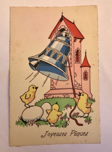 AK, Frohe Ostern, Joyeuses Paques, Kücken, Kirchturm, Glocke (40001 BW) Im Angebot