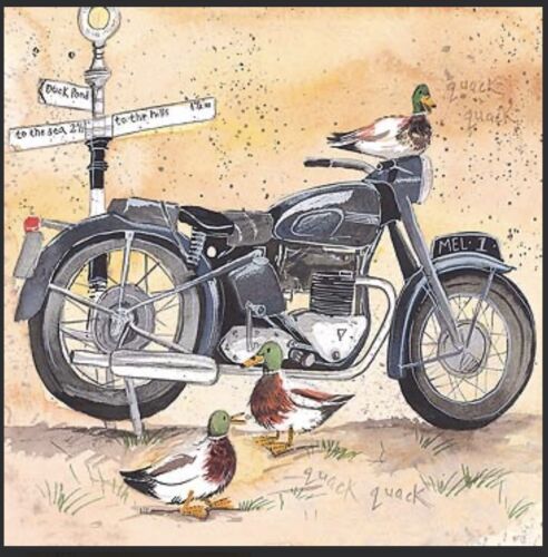 Alex Clark Karte Motorrad mit Enten 140x140 mm incl. Umschlag Motorrad 0003 Im Angebot