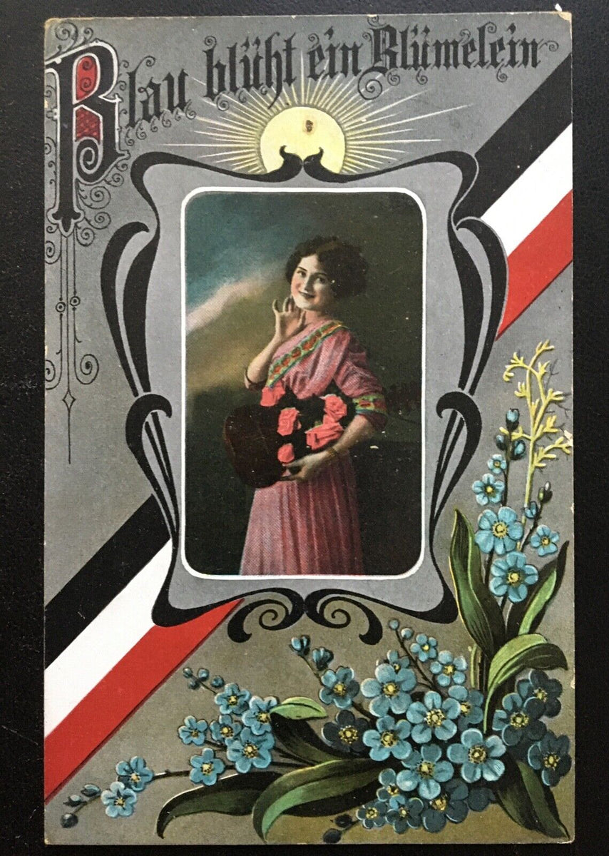 Blau blüht ein Blümelein - Frau mit Strauß - Soldaten Militär Krieg 400655 TH Im Angebot