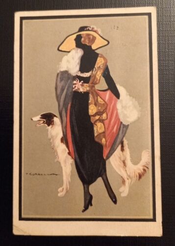 Dame mit Hut und Windhund 800057 Ga E Im Angebot