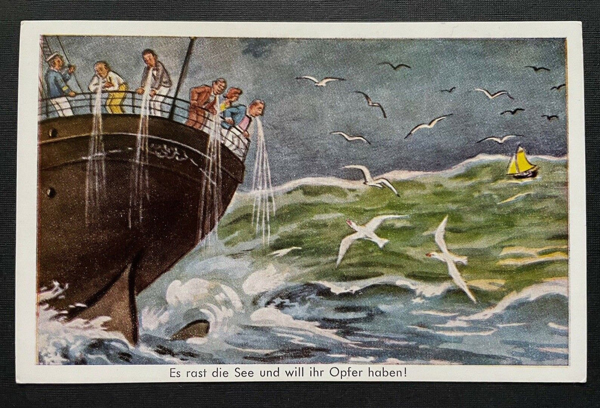 Es rast die See Opfer Seekrank Schiff Möwe Wellen Meer Boot Cartoon 401070 TH A Im Angebot