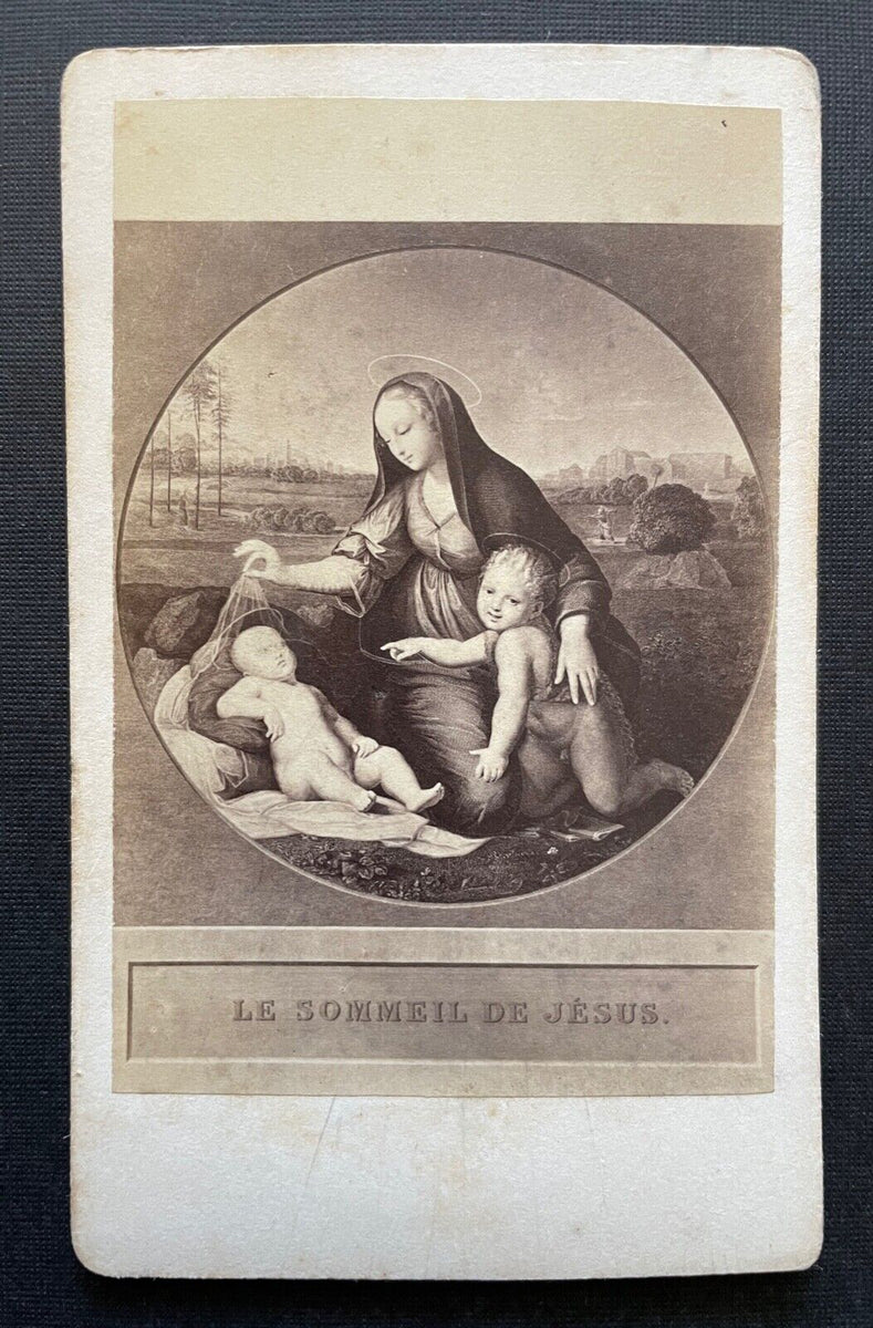 Foto Madonna m.d. schlafenden Kinde Raffael Bild Gemälde ca.10,1x6,2cm 402321 TH Im Angebot