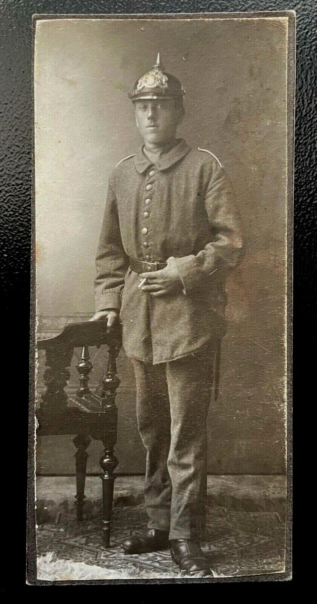 Foto Porträt Soldat Uniform Pickelhaube Stuhl ca.10,8x5cm 402416 TH Im Angebot