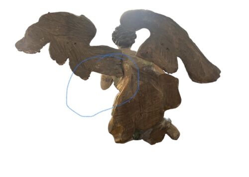Der Engel weist Gebrauchsspuren auf, beschädigter Finger, abgebrochenes Sück beim Flügel , Leichte Absplitterungen ( siehe Foto)