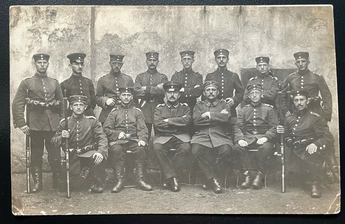 Gruppenaufnahme Soldaten Uniform Schirmmütze Bart Gewehr Militär Krieg 400585 TH Im Angebot