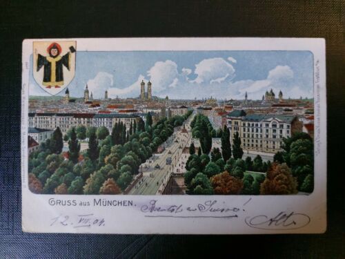 Gruß aus München Wappen Kirche Dom Hauptstraße Park Bäume 402582 WM F Im Angebot