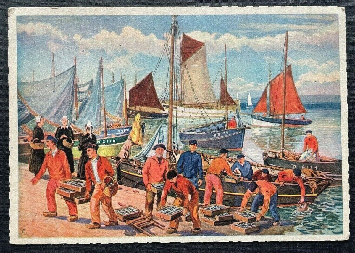 Hafen Fischer Segelschiffe Anlegestelle Ufer Boot Angler Frankreich 410083 TH Im Angebot