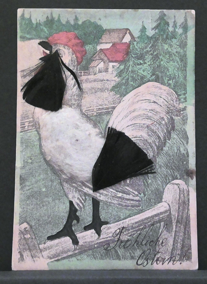 Hahn Gemälde Echtfedern Fröhliche Ostern JW 410202 F Im Angebot