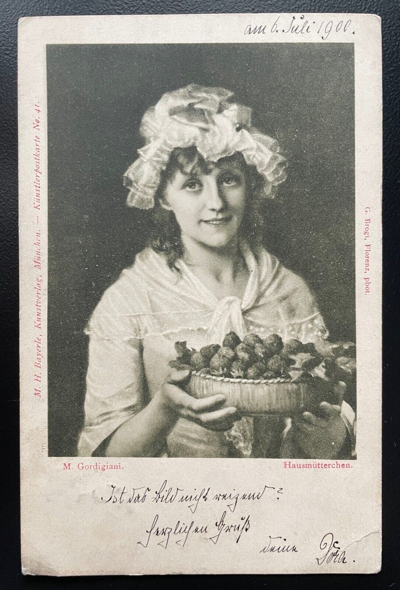 Hausmütterchen M.Gordigiani Frau Hut Tracht Beeren Schüssel Korb 400590 TH A Im Angebot