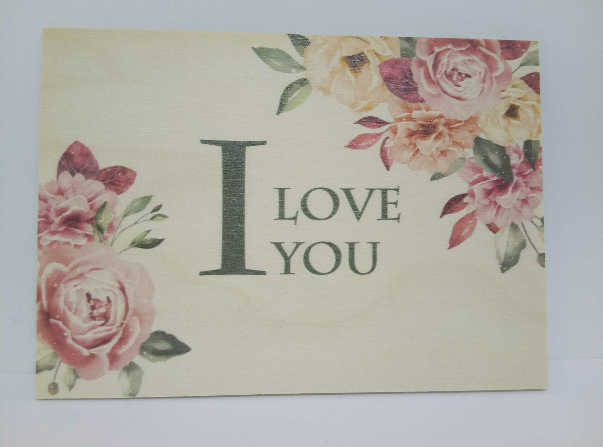 Holzkarte Holzpostkarte magnetisch "I love you" Rosen 14x10 Birkenholz 50276 Im Angebot