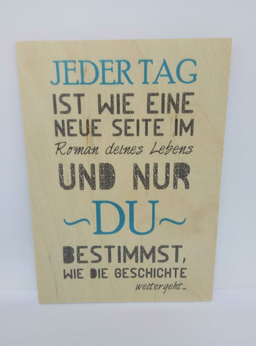 Holzpostkarte magnetisch "Jeder Tag..." Spruch s. Bild 14x10 Birkenholz 50291 Im Angebot