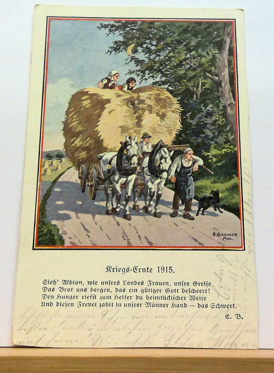 I. WK Kriegsernte 1915 Bauern Pferde Feldpost JWS 50143 Im Angebot