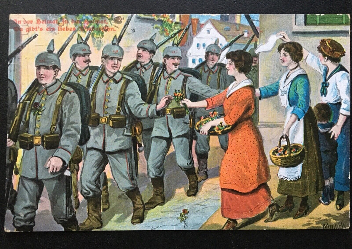 In der Heimat - Frauen verteilen Blumen - Soldaten Militär Krieg 400635 TH Im Angebot