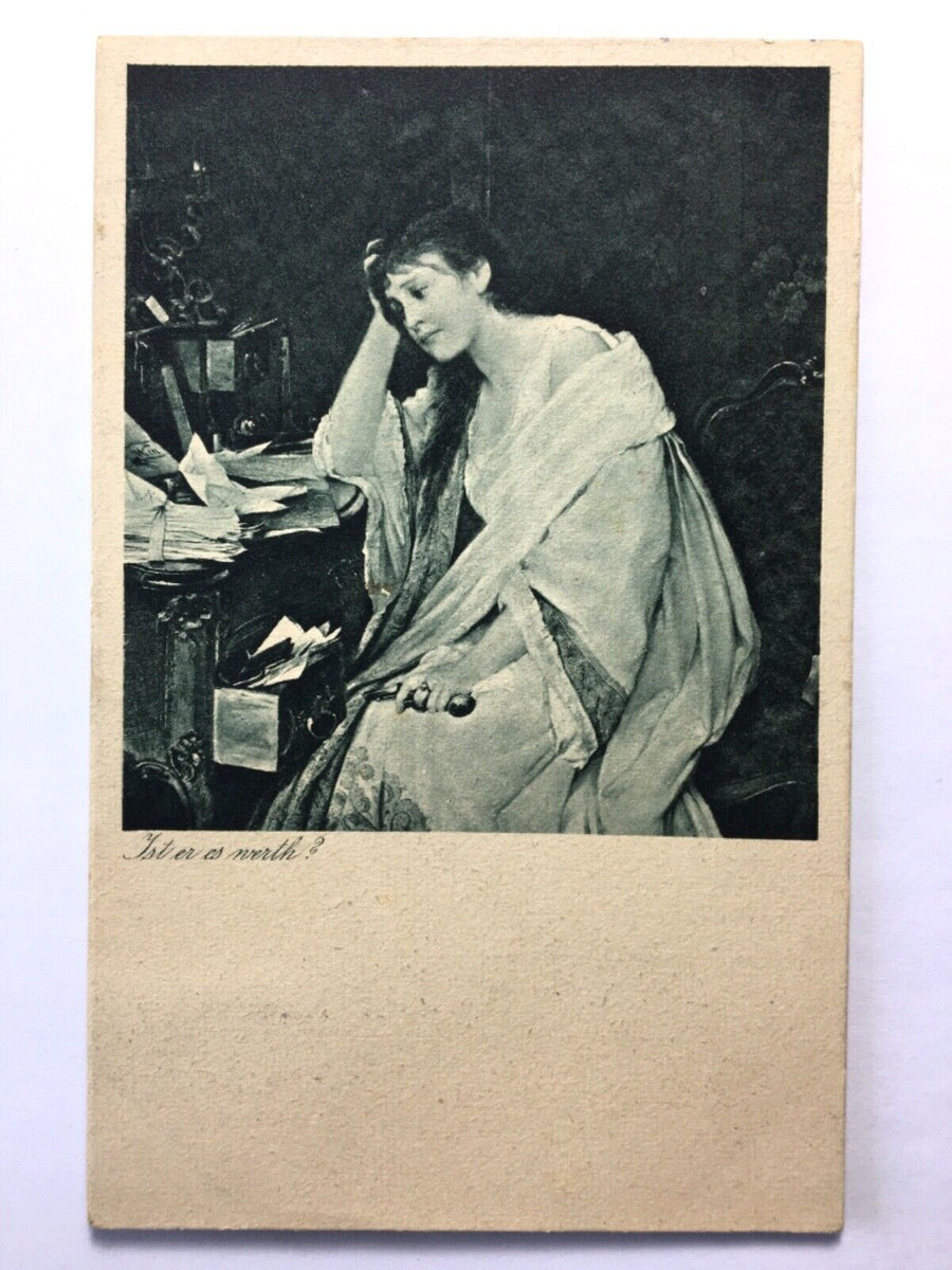 Ist er es werth? (L.Max-Ehrler) - Frau am Schreibtisch - Künstlerkarte 30097 TH Im Angebot