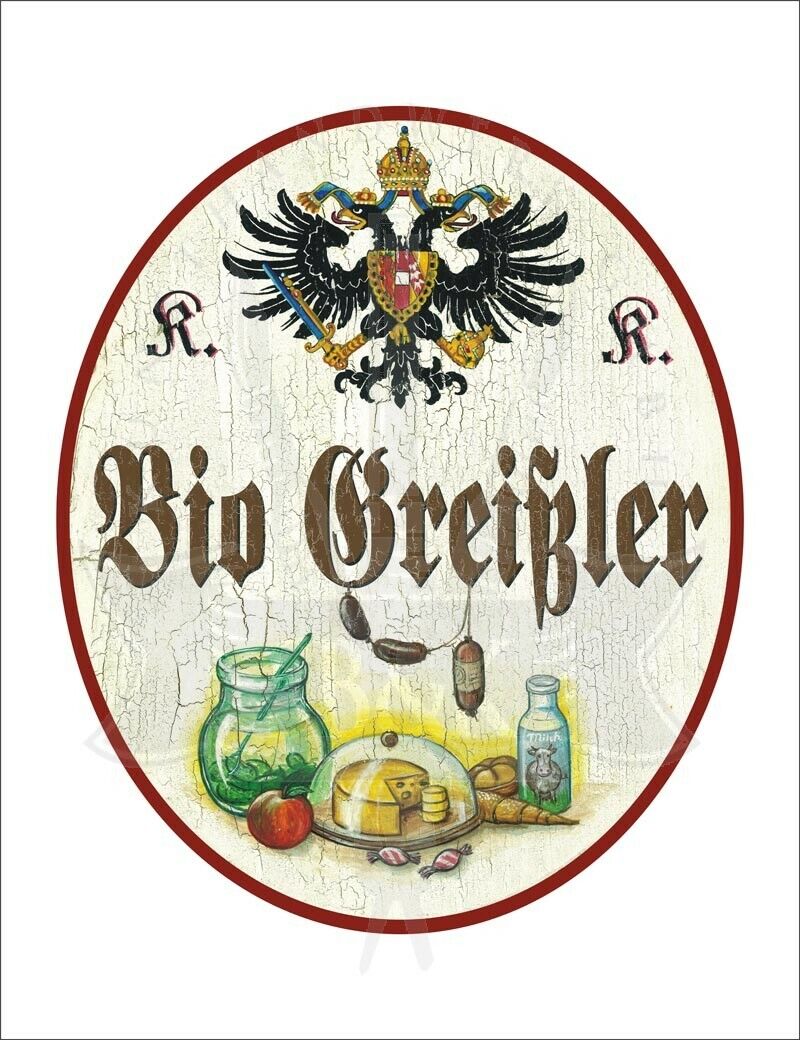 KuK Nostalgie Holzschild - Bio-Greissler - Lebensmittel TH Im Angebot