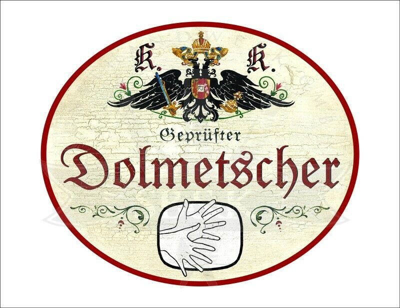 KuK Nostalgie Holzschild - Geprüfter Dolmetscher - Hände Gebärdensprache TH Im Angebot