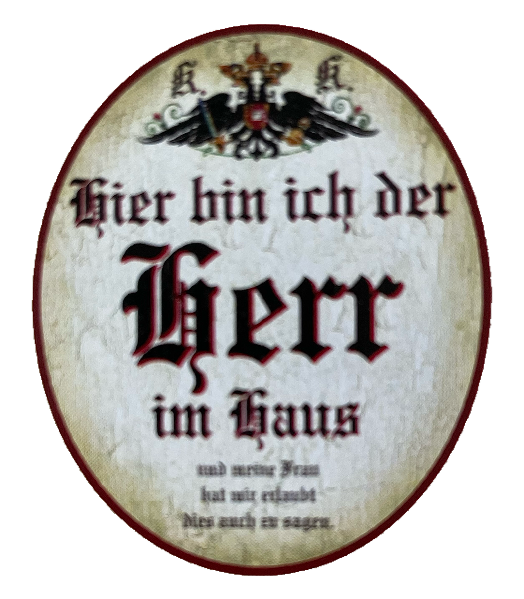 KuK Nostalgie Holzschild Hier Bin Ich Der Herr Im Haus Schild Im Angebot