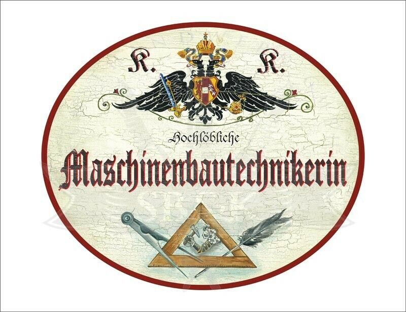 KuK Nostalgie Holzschild - Hochlöbliche Maschinenbautechnikerin -Zirkel Feder TH Im Angebot