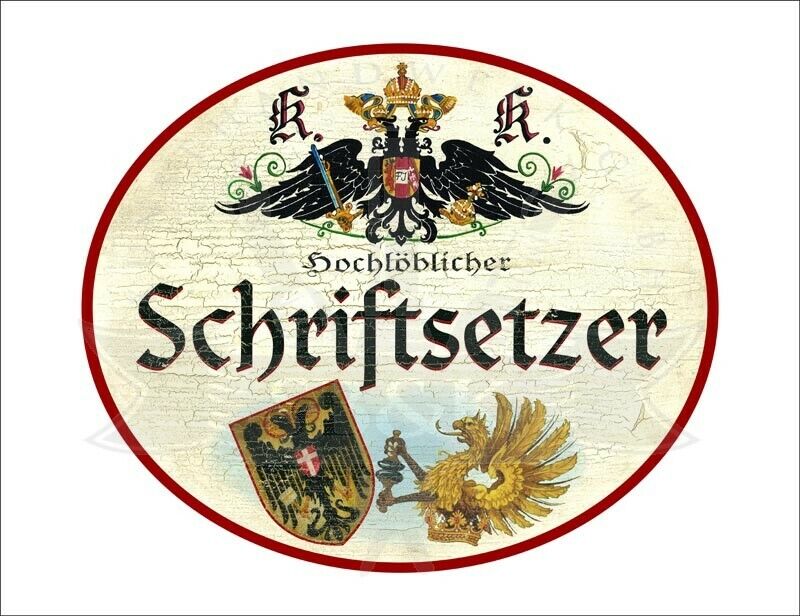 KuK Nostalgie Holzschild - Hochlöblicher Schriftsetzer - Wappen TH Im Angebot