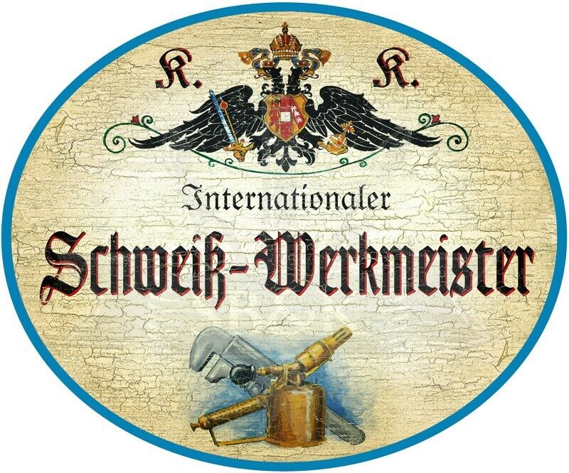 KuK Nostalgie Holzschild - Internationaler Schweiß-Werkmeister - Maschine TH Im Angebot