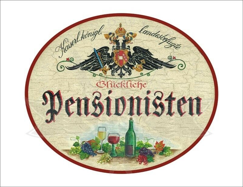 KuK Nostalgie Holzschild - Landesbef. Glückliche Pensionisten - Weingläser TH Im Angebot
