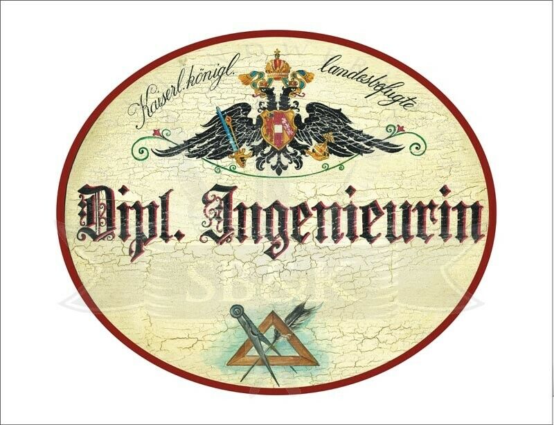 KuK Nostalgie Holzschild - Landesbefugte Dipl. Ingenieurin - Zirkel Feder TH Im Angebot