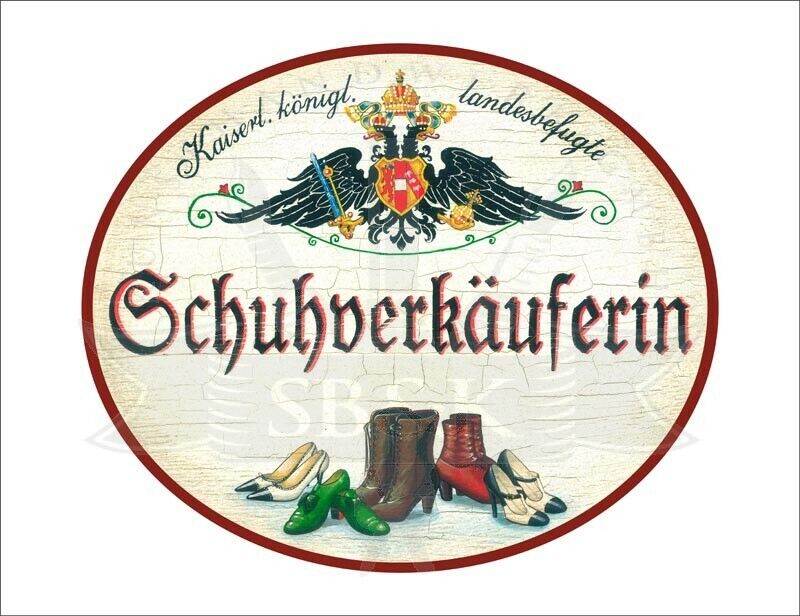 KuK Nostalgie Holzschild - Landesbefugte Schuhverkäuferin - Stöckelschuhe TH Im Angebot