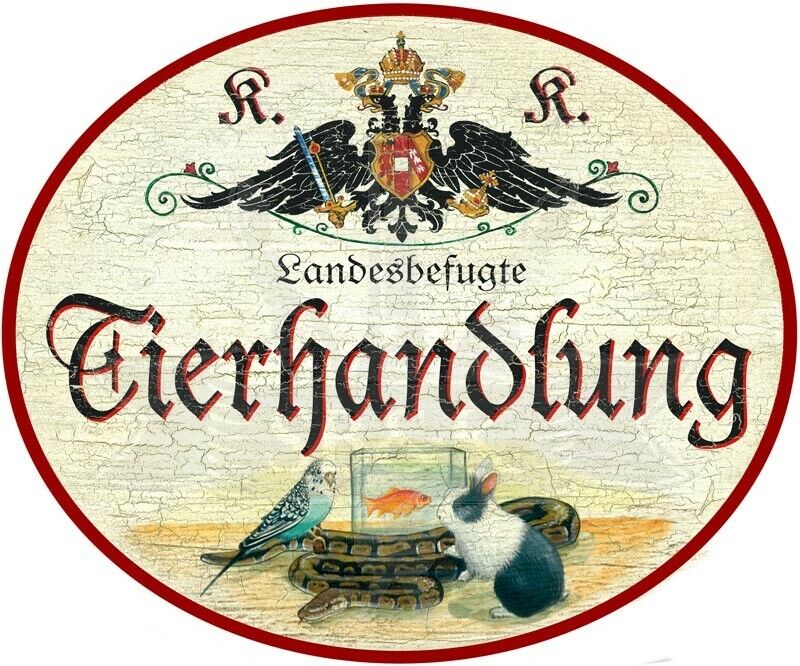 KuK Nostalgie Holzschild - Landesbefugte Tierhandlung - Vogel Fisch Kaninchen TH Im Angebot