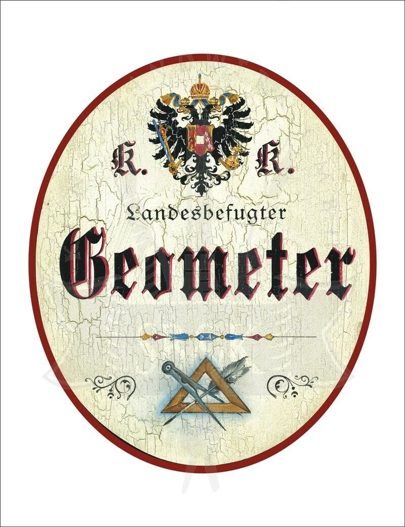 KuK Nostalgie Holzschild - Landesbefugter Geometer - Zirkel Feder TH Im Angebot