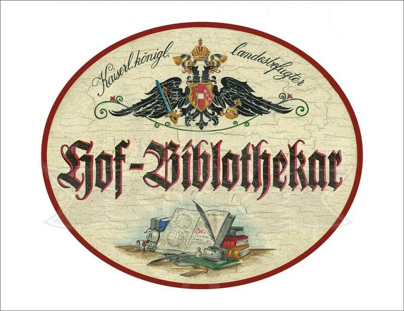 KuK Nostalgie Holzschild - Landesbefugter Hof-Bibliothekar - Bücher Feder TH Im Angebot