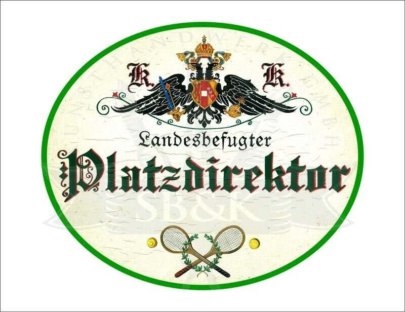 KuK Nostalgie Holzschild - Landesbefugter Platzdirektor - Tennisschläger Ball TH Im Angebot