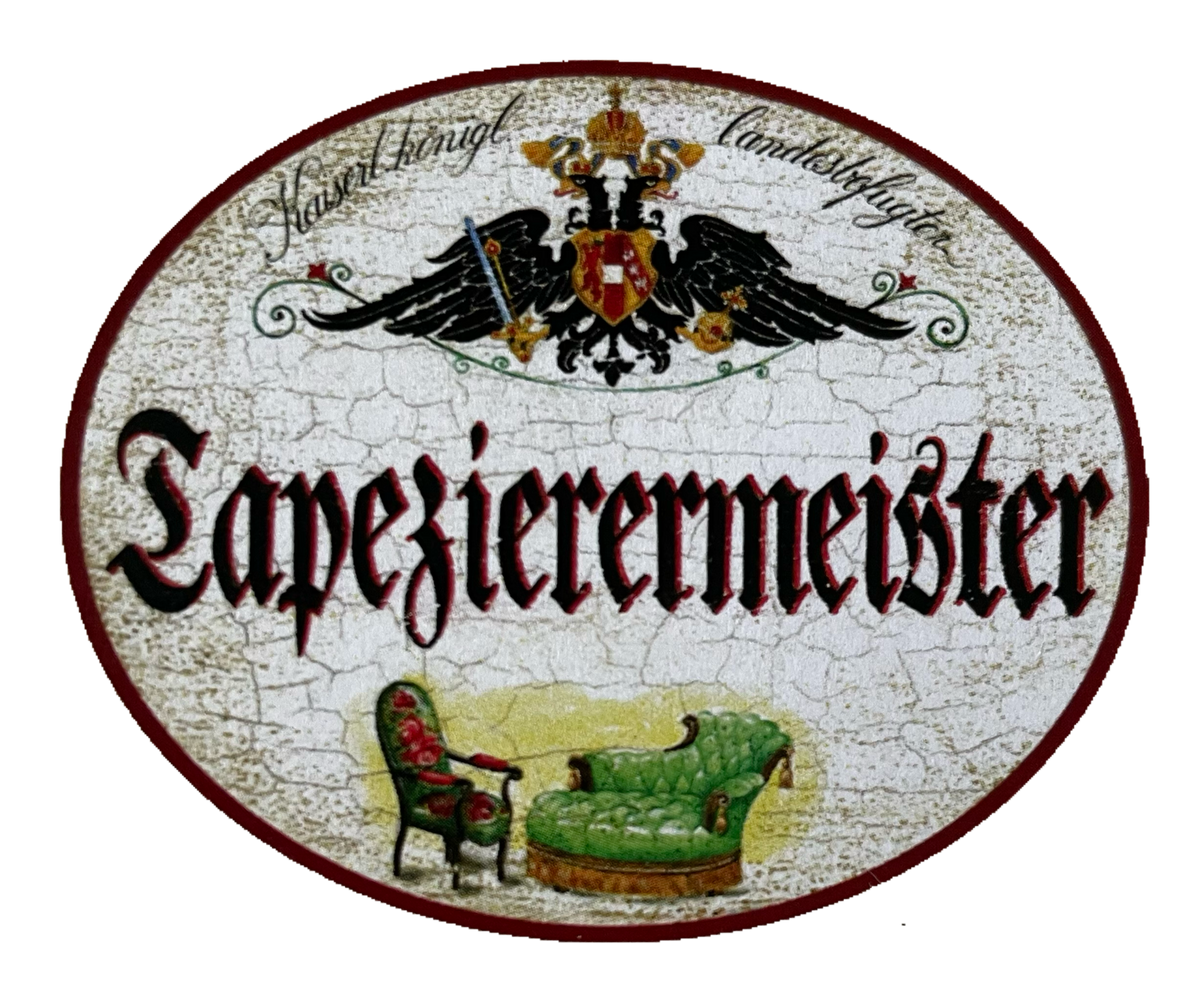 Entdecken Sie das charmante „KuK Nostalgie Holzschild Landesbefugter Tapezierermeister Tapezieren Schild“ – ein wahres Must-have für jeden anspruchsvollen Handwerksliebhaber und eine wunderbare Hommage an die traditionsreiche Kunst des Tapezierens. Dieses dekorative Holzschild verbindet nostalgisches Design mit professioneller Wertschätzung und ist damit das perfekte Geschenk für jeden Tapezierer oder Inneneinrichter.