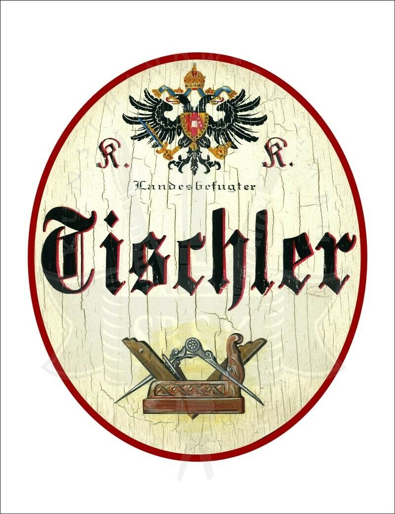 KuK Nostalgie Holzschild - Landesbefugter Tischler - Wappen Hobel TH Im Angebot
