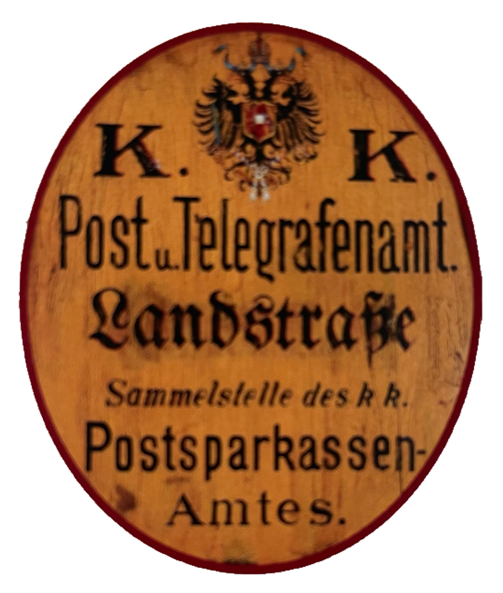 Die nostalgische Aufschrift "Post & Telegrafenamt Landstraße Postsparkasse" versetzt jeden Betrachter direkt zurück in die Vergangenheit. Jedes Detail wurde mit Liebe zum historischen Kontext ausgearbeitet, sodass das Schild nicht nur dekorativ ist, sondern auch eine Verbindung zu den Geschichten und Erinnerungen vergangener Generationen herstellt.