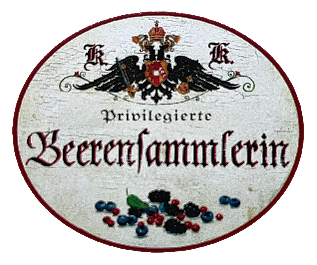 KuK Nostalgie Holzschild "Privilegierte Beerensammlerin" Waldbeeren Blatt Im Angebot