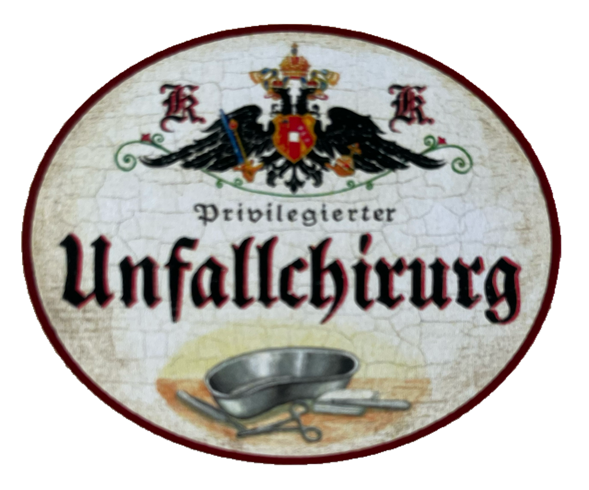 Entdecken Sie unser einzigartiges KuK Nostalgie Holzschild "Privilegierter Unfallchirurg" – ein stilvolles und zugleich humorvolles Dekorationsobjekt, das sowohl in der Praxis als auch zu Hause für Gesprächsstoff sorgt. Dieses handgefertigte Holzschild verbindet nostalgischen Charme mit einer Prise Humor und wird zum perfekten Geschenk für jeden Unfallchirurgen oder Mediziner, der seinen Beruf liebt.