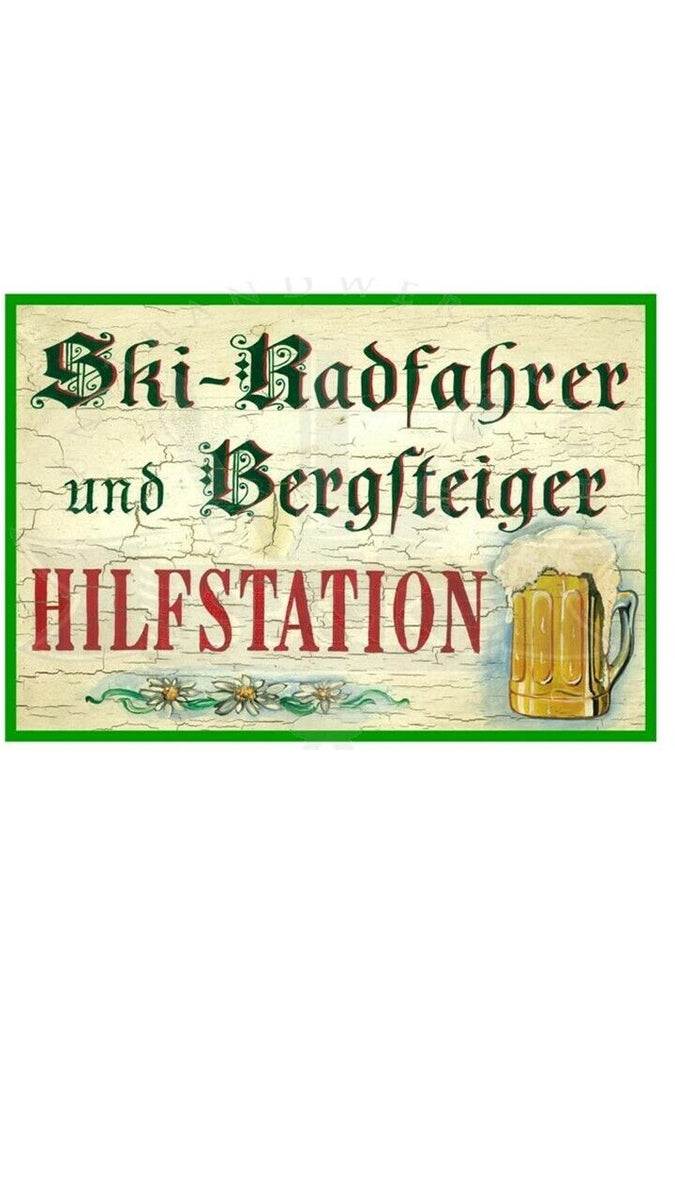 KuK Nostalgie Holzschild "Ski-Radfahrer und Bergsteiger Hilfstation" Im Angebot