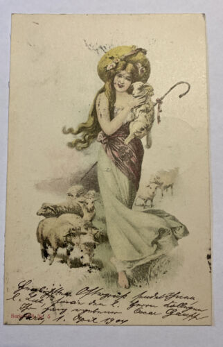 Künstlerkarte Frau Schafe Lamm 84004 Im Angebot