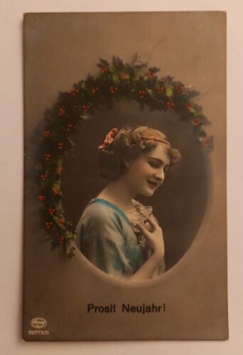 Künstlerkarte Prosit Neujahr Frau mit Glas 600606A gr D Im Angebot