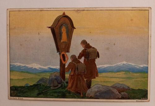 Künstlerkarte zwei Männer am Berg 500087A gr D Im Angebot