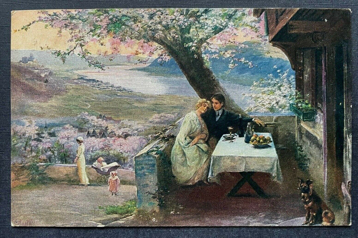 Malerei Ein Frühlingstraum D.Barthel Mann Frau Paar Ausblick Tisch 400403 TH Im Angebot