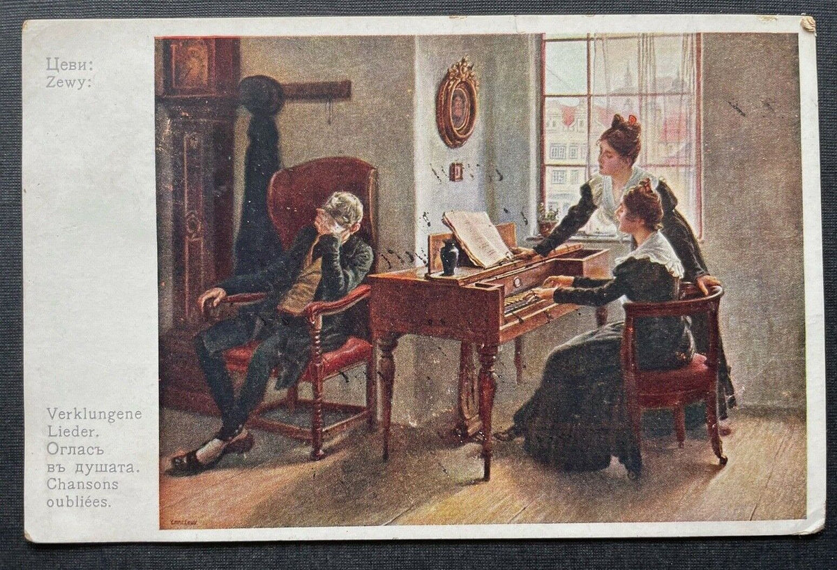 Malerei Verklungene Lieder C.Zewy Frauen Klavier Mann Sessel Kleid 402708 TH C Im Angebot