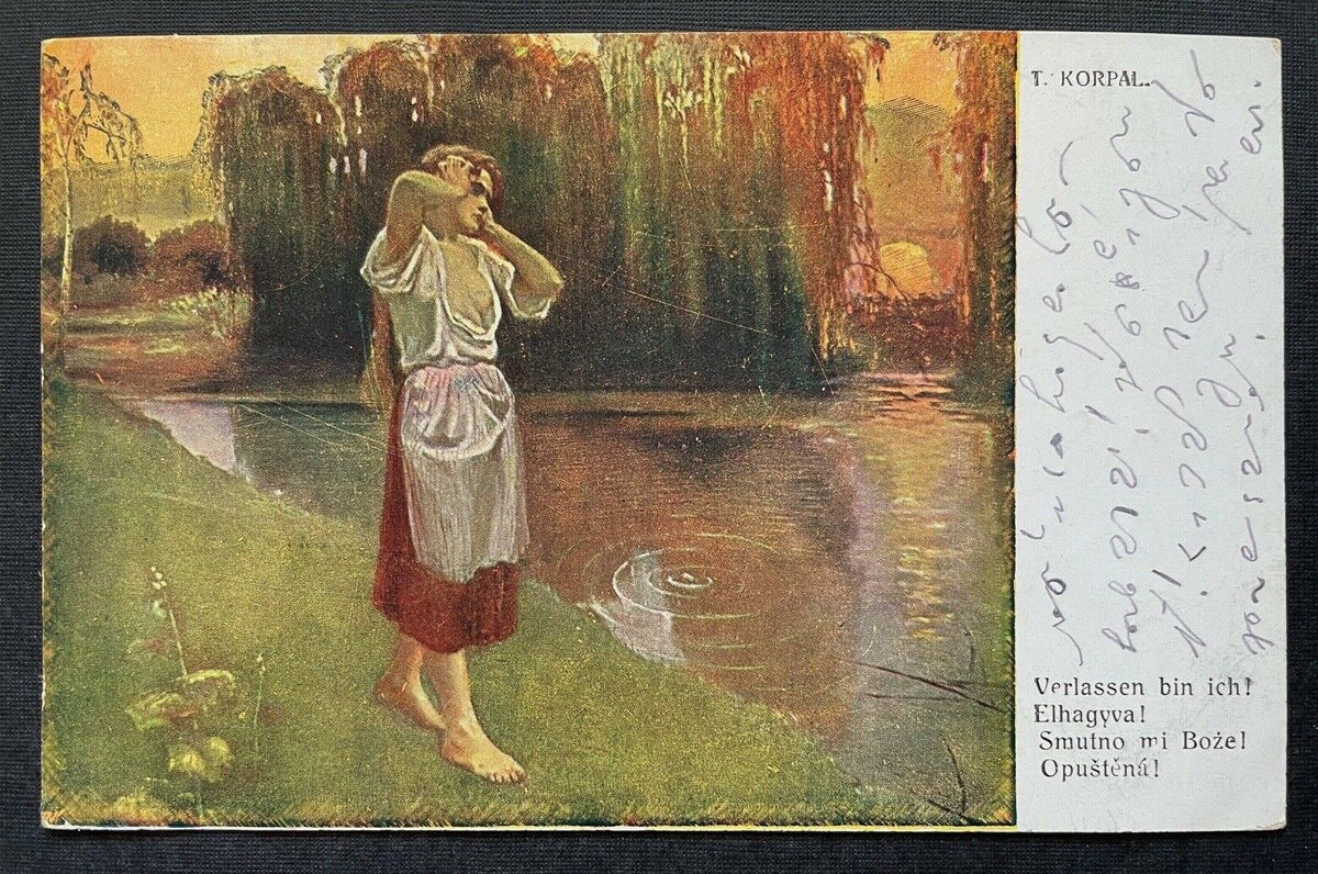 Malerei Verlassen bin ich T.Koral Frau Kleid Liebe Einsamkeit See Park 410776 TH Im Angebot