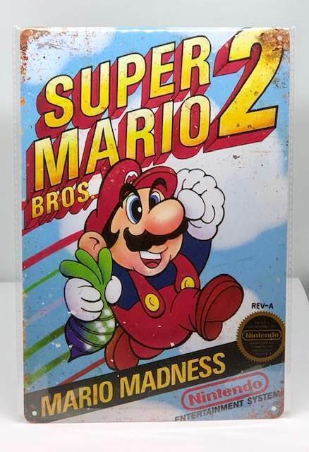 Bringen Sie einen Hauch von Nostalgie in Ihr Zuhause mit dem Retro Schild "SUPER MARIO 2 Bros. Nintendo"! Dieses hochwertige Metallschild im Format 30x20 cm ist das perfekte Dekorationsstück für echte Gamer und Nintendo-Fans. Mit farbenfrohen und detailreichen Grafiken aus dem beliebten Spiel "Super Mario 2" zaubert es sofort ein Lächeln auf Ihr Gesicht. Ob in Ihrem Wohnzimmer, Spielzimmer oder als Geschenk für Freunde – dieses Schild ist ein echter Hingucker. Sorgen Sie dafür, dass die Erinnerungen an eine der ikonischsten Spielereihen weiterleben!