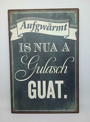 Nostalgie Retro Blechschild "aufgwärmt is nua a Gulasch gut" Dialekt 30x20 50349 Im Angebot