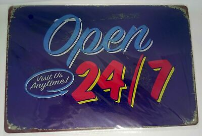 Nostalgie Retro Blechschild "Open 24/7 Visit Us Anytime" 30x20 50166 Im Angebot
