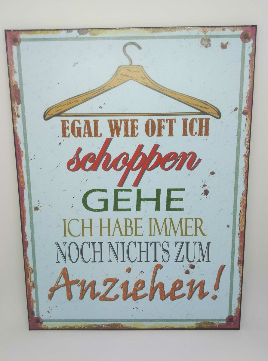 Nostalgie Retro Schild "Egal wie oft ich shoppen gehe..." 35x26 50238 Im Angebot