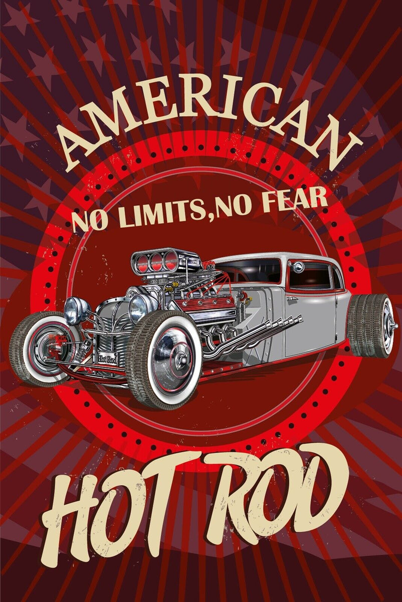Nostalgie Schild American Hot Rod Auto 12x18 / 20x30 / 30x40 Blech od. Holz Im Angebot