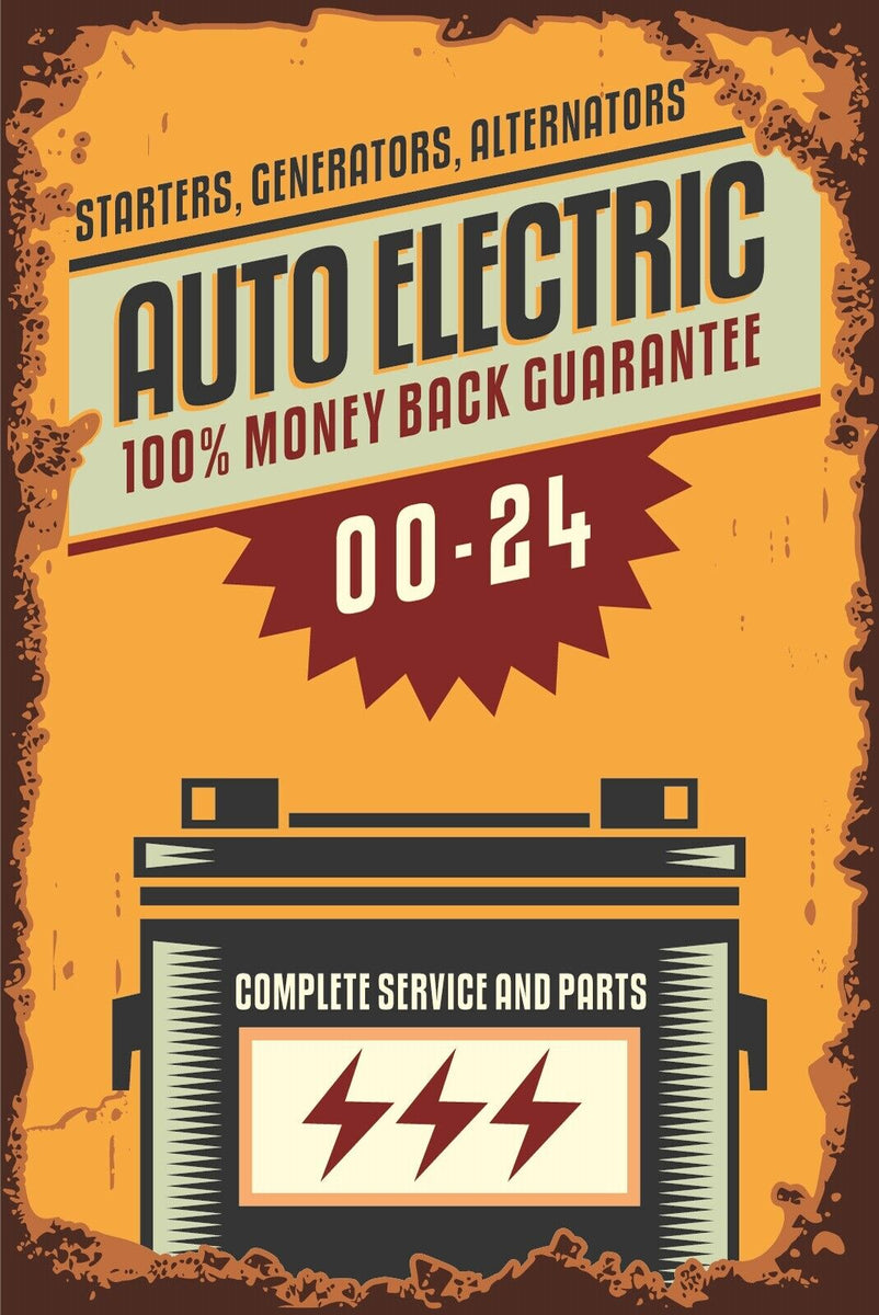 Nostalgie Schild Auto Electric 00-24 Service 12x18 / 20x30 / 30x40 Blech od.Holz Im Angebot